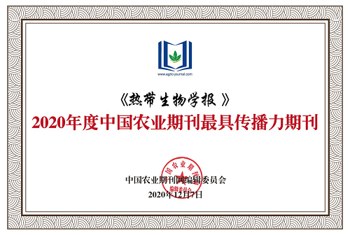 《热带生物学报》荣获“2020年度中国农业期刊最具传播力期刊”奖