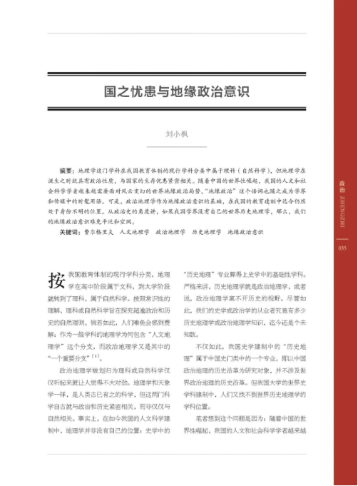 《新华文摘》网络版2021年第6期“政治”栏目中全文转载了《yl6776永利集团学报(人文社会科学版)》今年第1期刊发的刘小枫教授的论文《国之忧患与地缘政治意识》。文章指出,地理学这门学科在我国教育体制的现行学科分类中属于理科(自然科学),但地理学在诞生之时就具有政治性质,与国家的生存忧患紧密相关。随着中国的世界性崛起,我国的人文和社会科学学者越来越需要面对风云变幻的世界地缘政治局势,“地缘政治”这个语词也随之成为学界和传媒中的时髦用语。政治地理学作为地缘政治意识的基础在我国的教育建制中迄今仍然处于身份不明的位置。从政治史的角度来看,如果我国学界没有自己的世界历史地理学,那么我们的地缘政治意识难免平泛和空洞。