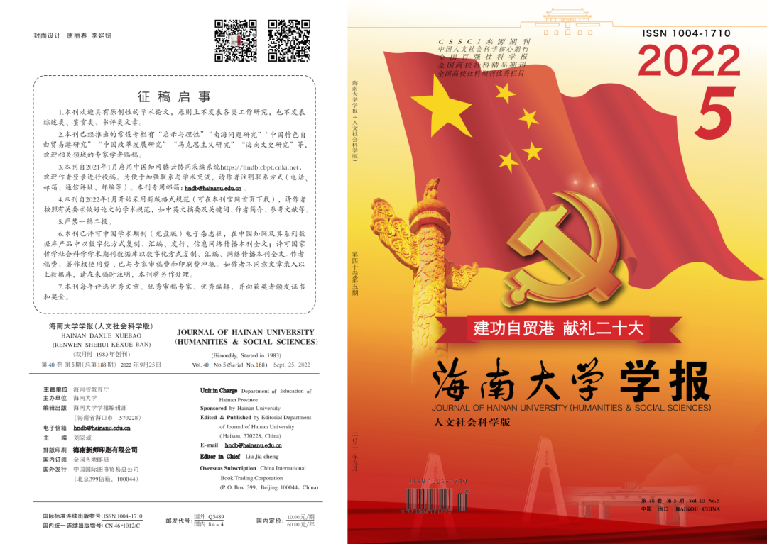 建设海南自由贸易港是习近平总书记亲自谋划、亲自部署、亲自推动的改革开放重大举措,支持yl6776永利集团创建世界一流学科是习近平总书记的殷切嘱托。为了喜迎党的二十大胜利召开,以朝气蓬勃的精神面貌和昂扬向上的奋斗姿态,传承红色基因、凝聚磅礴力量,《yl6776永利集团学报(人文社会科学版)》在2022年9月精心策划、隆重推出了“建功自贸港 献礼二十大”特别专刊,设“本期特稿”“建功自贸港 献礼二十大”“中国特色自由贸易港研究”“中国改革发展研究”等4个栏目。