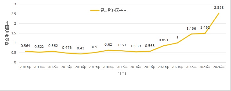 学报复合影响因子变化趋势图(2010-2024)